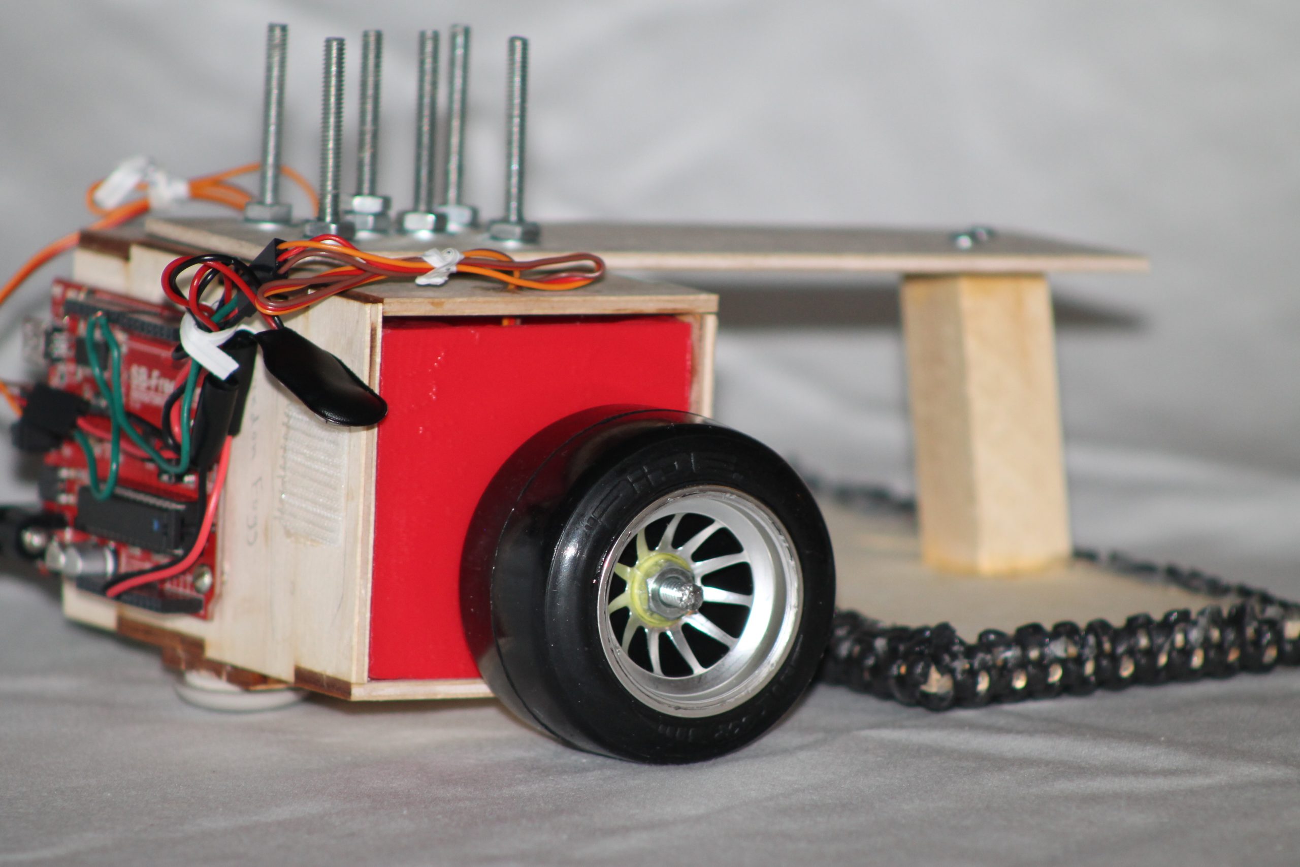 - Robot navigates an obstacle course/maze and pushes cups into zones autonomously